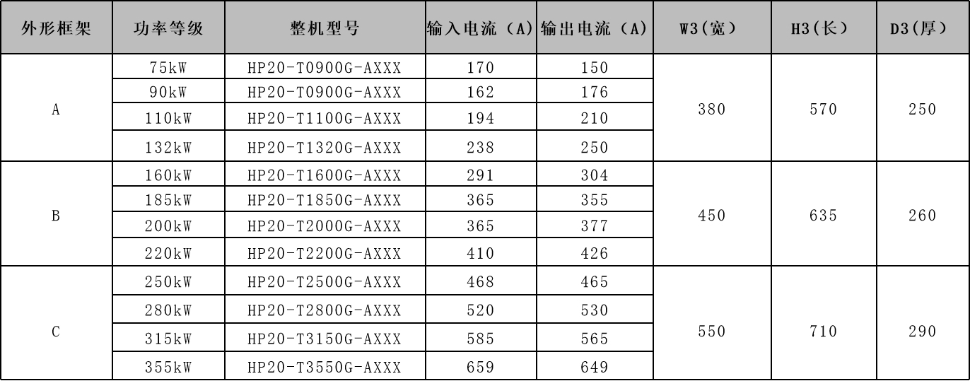 功率段涵盖75kW - 400kW ,支持VF控制、开环矢量控制及闭环矢量控制,